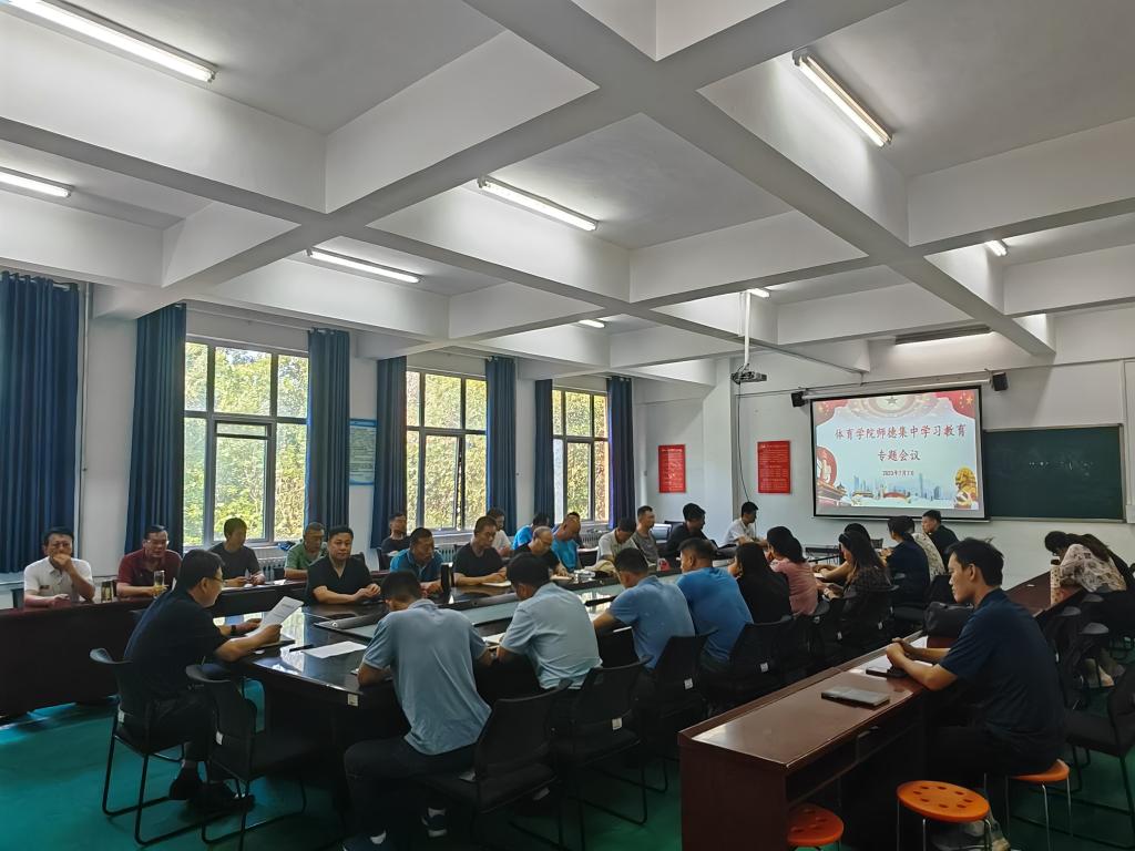 为深入学习贯彻习近平新时代中国特色社会主义思想,加强新形势下师德师风建设,根据学校《关于在全校开展师德集中学习教育的通知》要求,7月7日上午,体育学院召开师德集中学习教育专题会议。会议由体育学院党委书记辛亚杰主持。