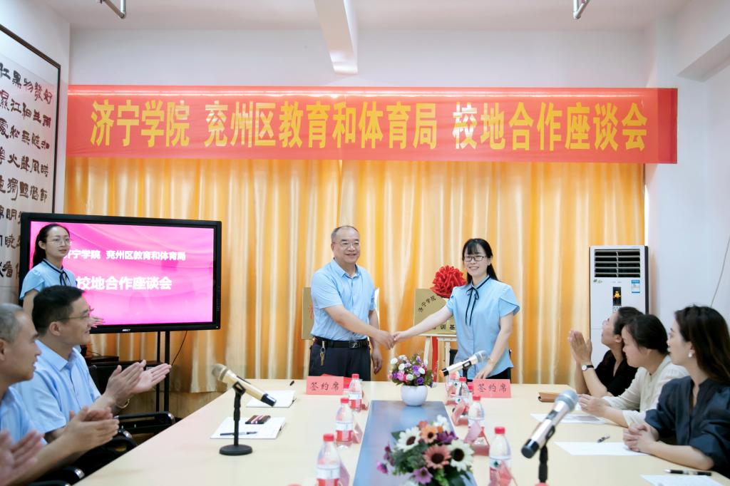 7月7日上午,学前教育学院与兖州区教育和体育局在韦园幼儿园举行“校地合作”座谈会,并与7所兖州区幼儿园签署实践教学基地和“双师型”教师培养培训基地合作协议。兖州区教育和体育局教育事业发展促进中心副主任徐晓光,兖州区教育和体育局人事科科长王帅,兖州区教育和体育局学前教育科科长狄媛媛出席座谈会。学前教育学院领导班子和兖州区八所公办幼儿园园长参加座谈会。