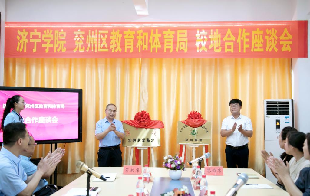 季首领、徐晓光共同为济宁学院实践教学基地、“双师型”教师培养培训基地揭牌。