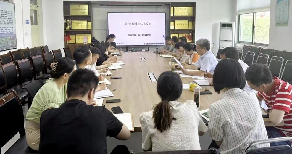 7月7日上午,儒商学院在会议室召开师德集中学习教育专题会议,推进加强学院师德师风建设工作。学院领导班子成员及学院教职工代表参加会议。会议由学院党委书记乔东华主持。