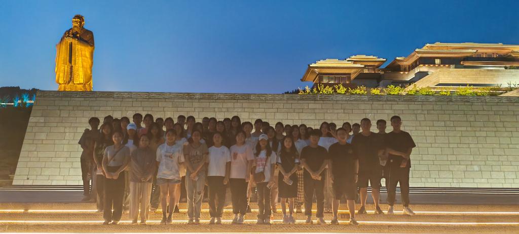 在尼山圣境,学生们在72m孔子像前近距离感受了岁月长河的奔涌与厚重,以及先圣思想的传承与光辉;情景体验了礼乐灯光秀《天下归仁》;在孔子大学堂中,老师对所经之处逐一进行细致讲解,带领学生领略匠心独运的廊柱、穹顶等传统建筑形式与现代创新技术材料的结合,体会儒家文明在中华文明中尊崇地位及深远影响。