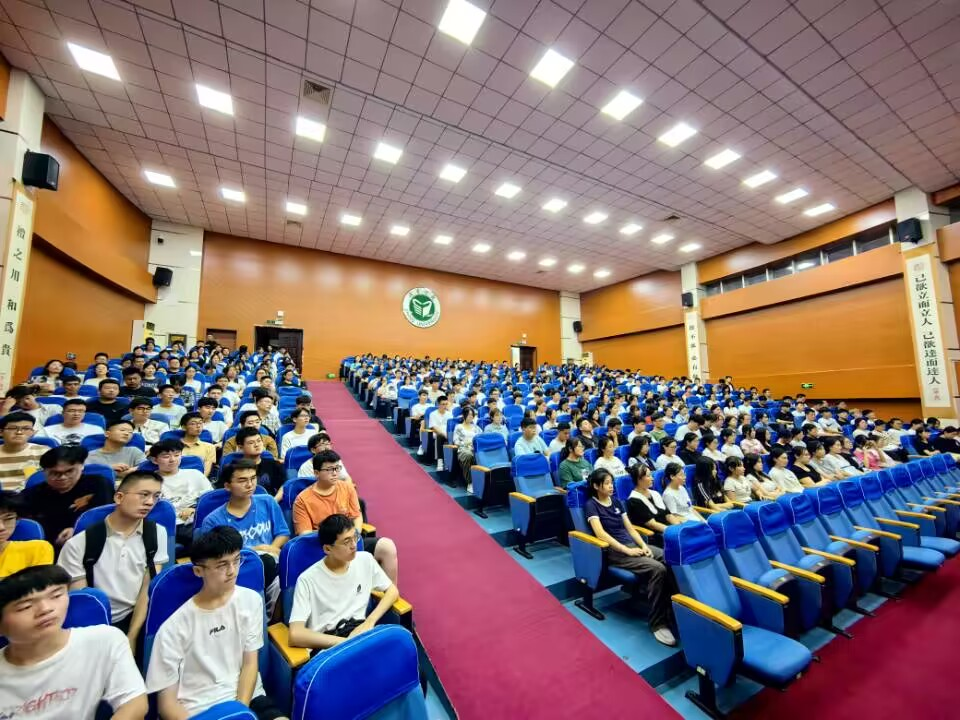 9月10日晚,生命科学与生物工程学院党委书记李洪伟在理科楼报告厅为2023级新生讲授“开学第一课”。