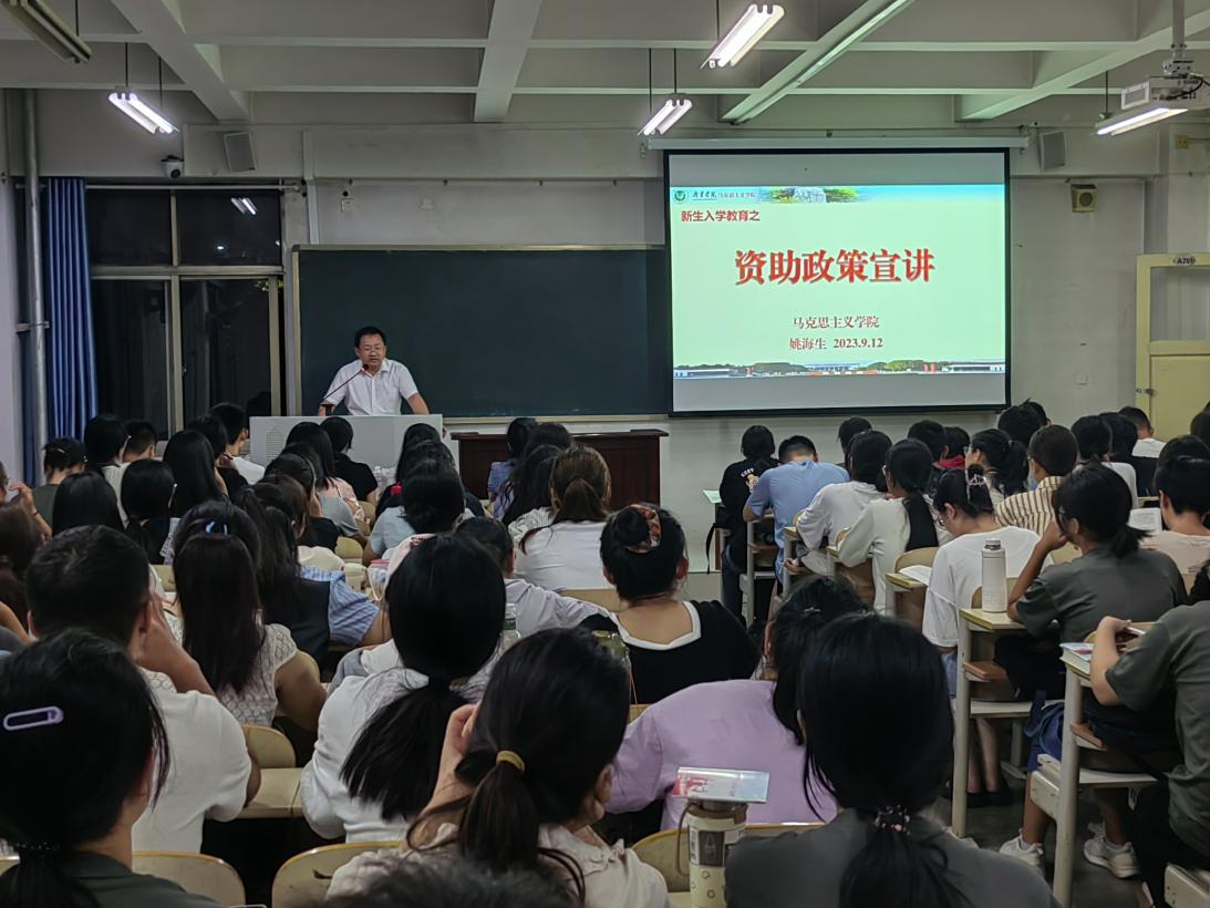 为加大国家资助政策宣传力度,让更多的学生了解国家资助政策,充分发挥资助育人功能,9月12日,该院团委书记姚海生从家庭经济困难学生认定办法、国家奖助学金评审办法、生源地助学贷款等方面做了详细讲解,并引导学生增强诚信意识、感恩意识,树立正确的消费观和价值观。