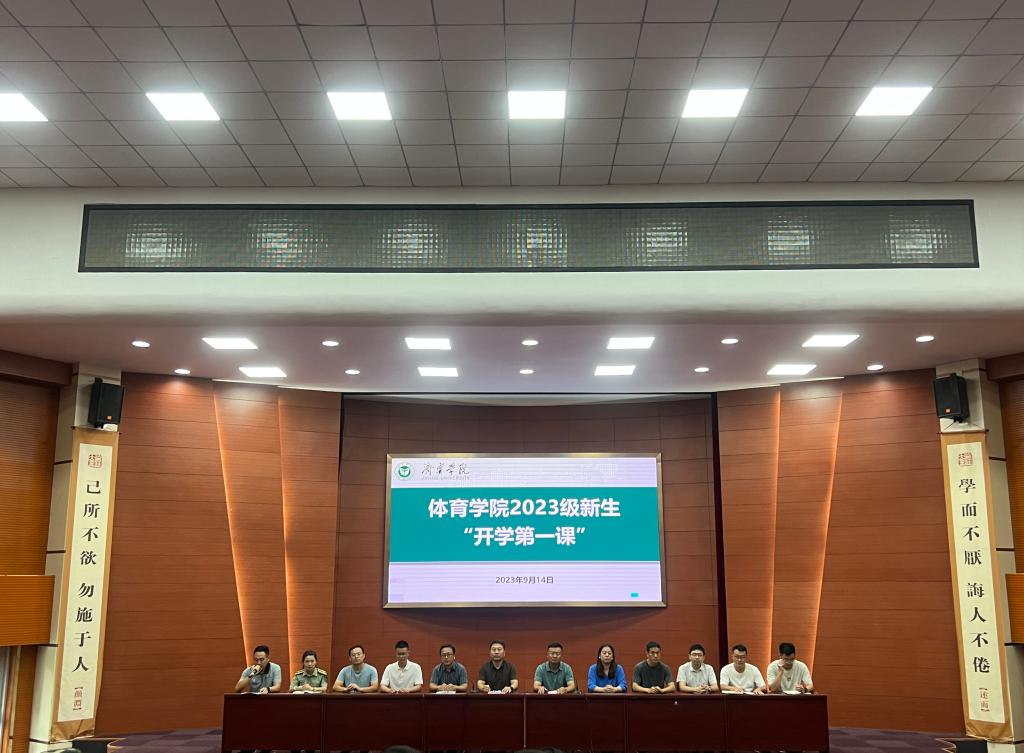 9月14日,体育学院在理科楼报告厅举办2023级新生见面会暨“开学第一课”。体育学院党委书记辛亚杰、院长徐刚、党委副书记辛允东及相关行政人员、辅导员、班主任出席见面会。