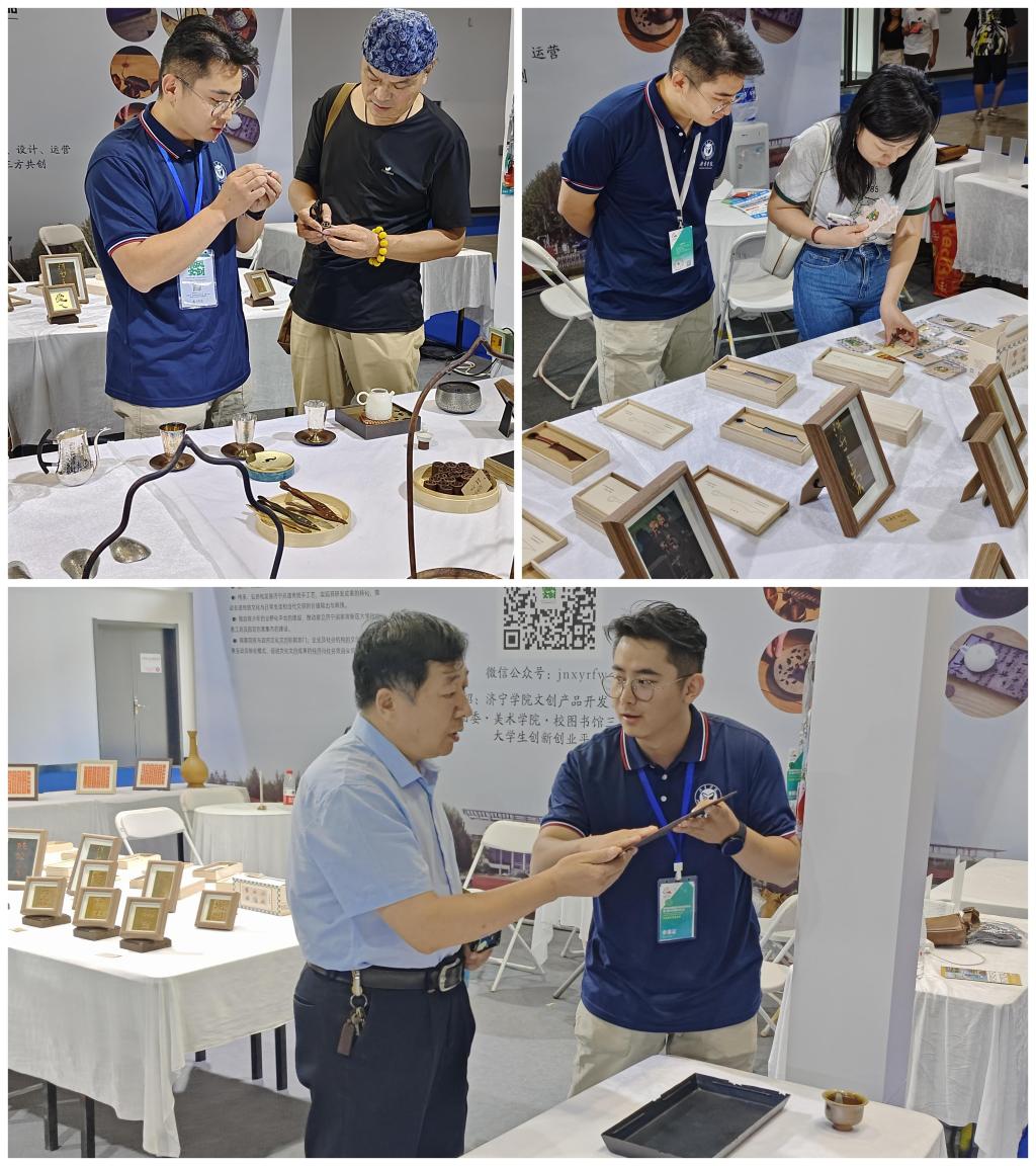 美术学院“儒风文创”项目,集中展现了美术学院立足儒家文化文创,以“教学+实践”的路径,通过手造的方式,形成的特色文创产品,进一步提高了儒家文化文创产品的知名度和影响力。活动期间,美术学院师生还与山东建筑大学、山东女子学院、山东交通学院、烟台职业学院等其他参展院校就专业设置、实践教学、文创成果转化等方面进行了深入的交流。