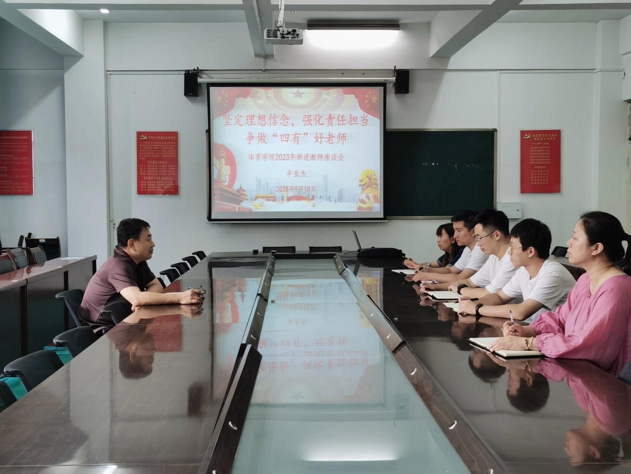 9月18日,体育学院召开新进教师座谈会,该院党委书记辛亚杰主持座谈会,组织员、院长助理杨皖霖出席,5名新进教师参加座谈会。