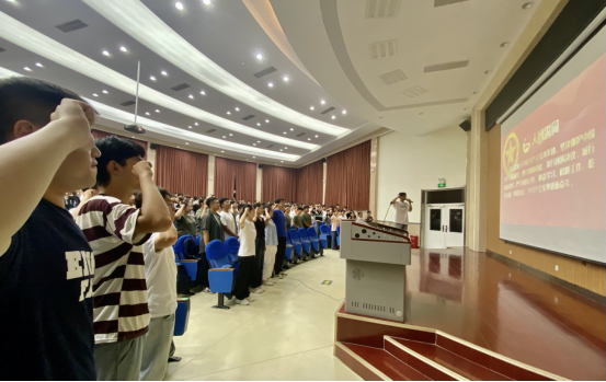 活动最后,全体团员在该院学生会主席李晨阳同学的带领下,面向团旗,重温入团誓词。