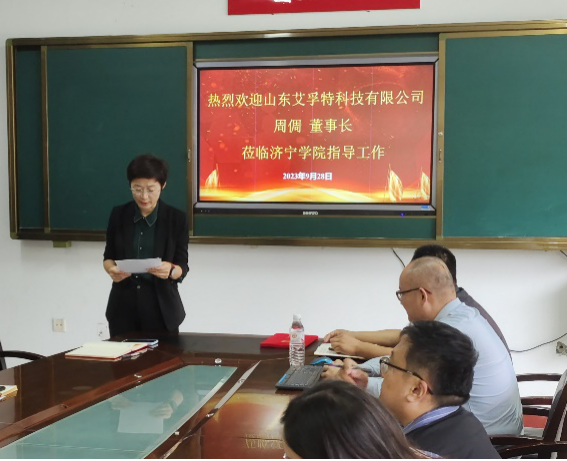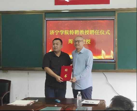 首先,马新蕾为本次交流活动致辞,热烈欢迎周倜一行在双节来临之际莅临指导,感谢了周倜董事长及公司一直以来对我院发展的关心和支持,并对周倜的个人及聘任情况进行了简要介绍。随后,举行了特聘教授聘任仪式,刘涛为周倜颁发了济宁学院特聘教授聘书,并期待周倜教授为我院的产学研工作推进开创新局面。