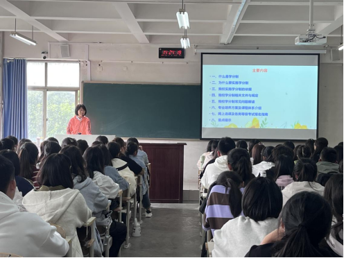 开展学分制介绍讲座。邀请马克思主义学院教学科研办公室主任许雁萍以《学分制介绍与课程学习管理》为题,从什么是学分制、为什么要实施学分制、我校实施学分制的依据、我校学分制相关文件与规定、我校学分制常见问题解读、专业培养方案及课程体系介绍、网上选课及各类等级考试报名指南、重点提示等八个方面做了详细讲解。