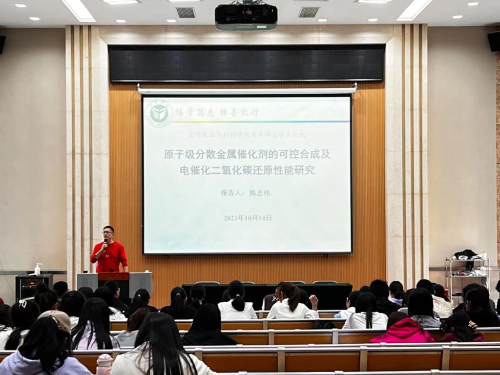 10月14日,化学化工与材料学院2023年第二期青年博士学术论坛在8号教学楼B103教室举行。7名青年博士分别进行交流分享,近两百名学生参与论坛。论坛由化学化工与材料学院院长助理郑逸群博士主持。
