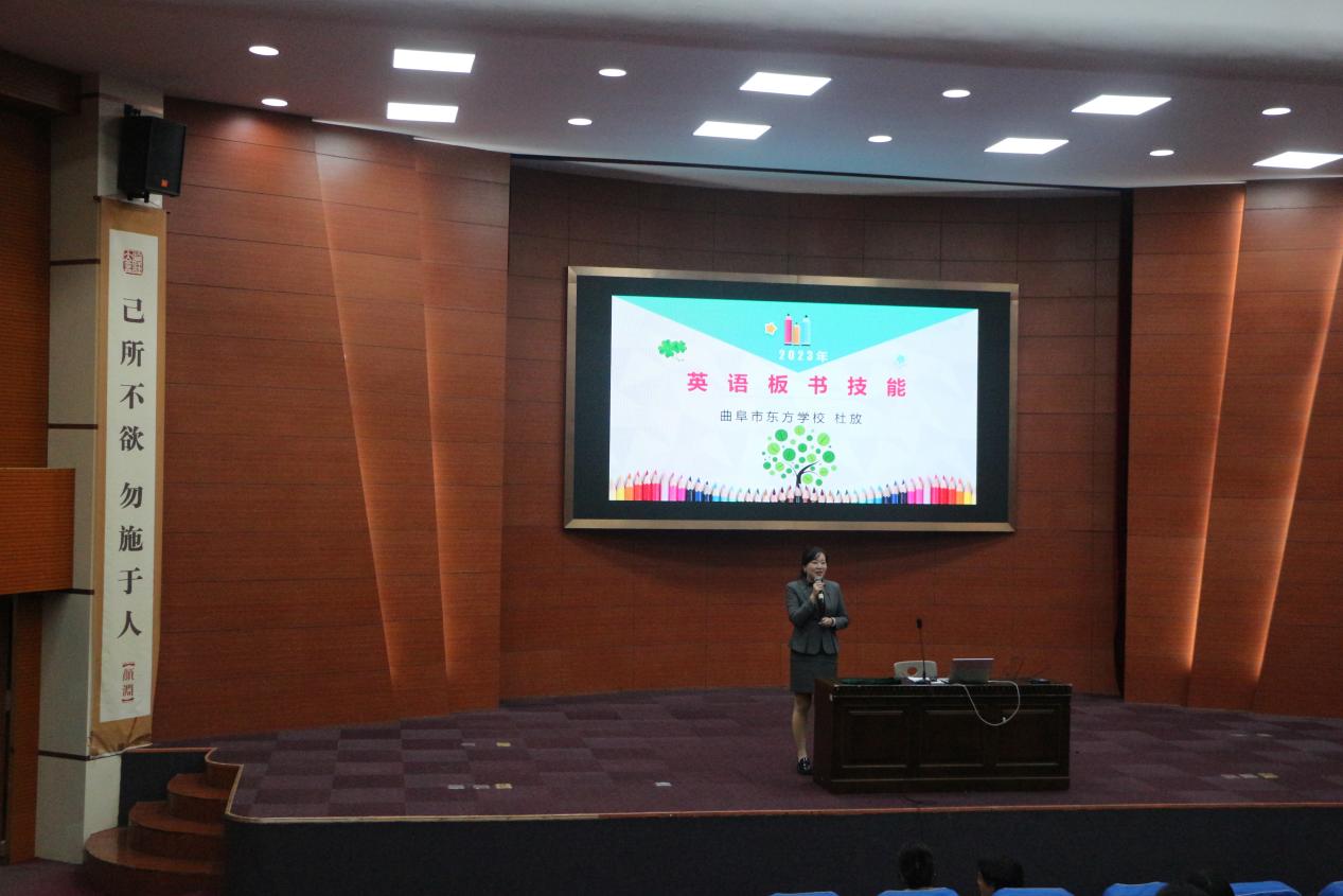 10月20日晚,外国语学院在理科楼报告厅开展“名师•名校长进校园” 暨师范生从业技能培养工作坊第十九期活动,本次活动由教务处和外国语学院联合主办,邀请曲阜市东方学校副校长杜放作了题为“英语板书技能”的报告。报告会由外国语学院院长助理刘暖主持,曲阜东方学校德育部主任杜冉冉老师,部分教师代表,2022级小学英语教育专业、2023级英语师范(专升本)等300余名学生参加了此次活动。