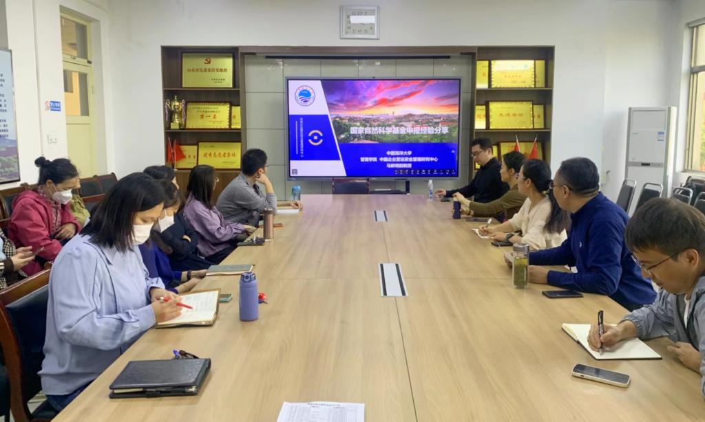 儒商学院自10月份启动2024年基金项目申报准备工作后,一直注重“请进来”+“走出去”的形式,学习申报经验,分享申报体会。为鼓励教师申报高层次科研项目,推动高质量科研成果产出,11月1日下午,儒商学院在3号楼会议室举办第八期“博士沙龙”,邀请中国海洋大学、中国企业营运资金管理研究中心马新啸教授进行国家自然科学基金申报经验分享。