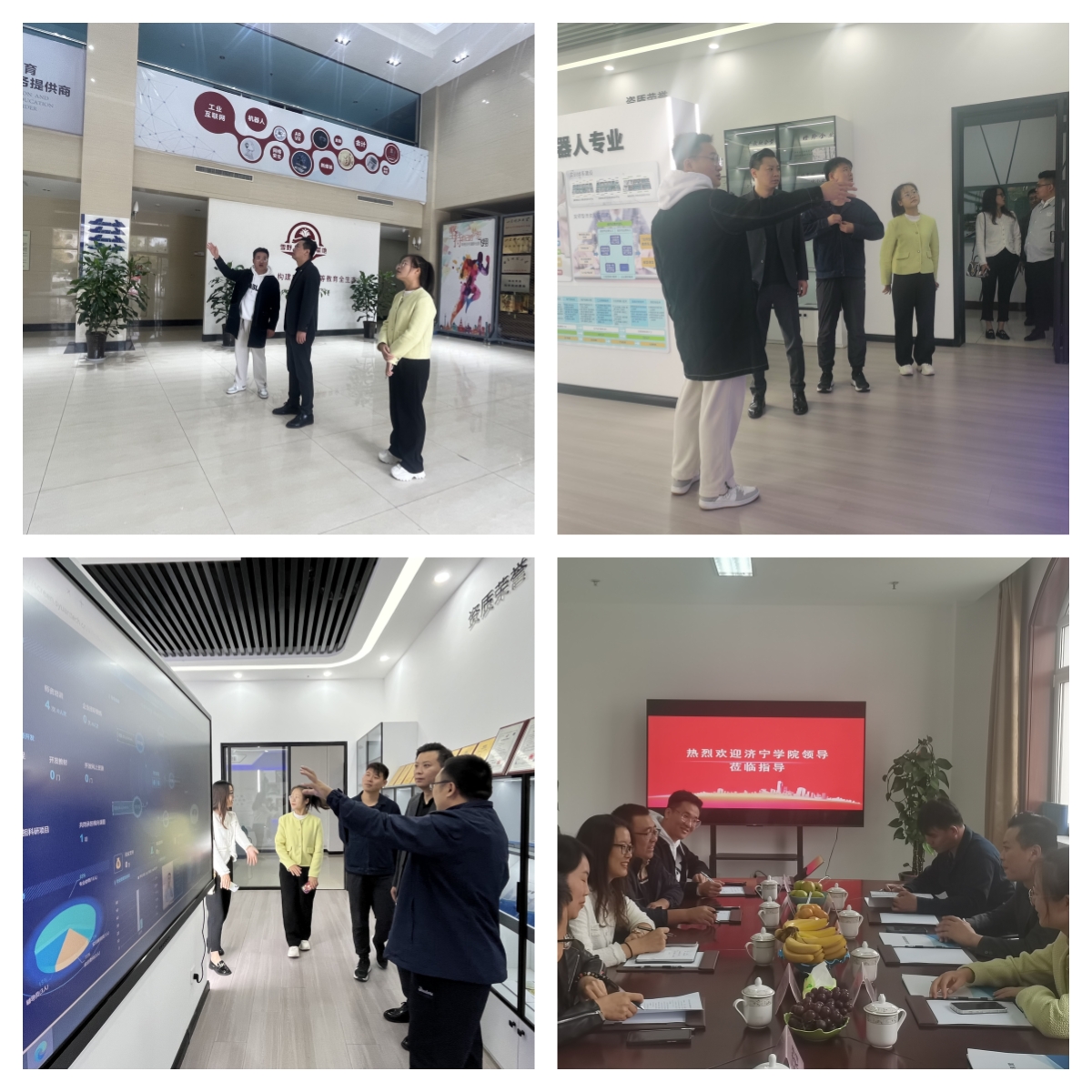 为深入了解学生在教学实训基地期间的思想、学习与生活情况,强化校企合作深度融合,促进专业发展,11月3日下午儒商学院院长助理董腾及毕业班辅导员一行赴济南市莱芜区雪野湖人才培养基地亲切走访慰问教学实训学生,并与山东智博教育科技有限公司总经理曹馨文、业务负责人孟东海就深化校企合作事宜进行座谈交流,共同探讨校企合作新模式。