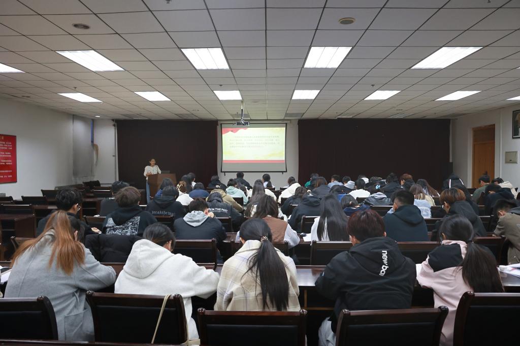 讲座上,周争艳副院长阐明了党的二十大召开的历史背景和重要意义,对党的二十大报告的基本框架和主要内容进行了解读。随后,从“两个行”“两个结合”“十个明确”“十四个坚持”“十三个方面成就”等方面对习近平新时代中国特色社会主义思想进行了详细讲解。她希望同学们在新时代下,要始终保持昂扬向上的精神状态,怀抱梦想又脚踏实地,敢想敢为又善作善成,勇做推进中国式现代化的奋进者、开拓者、奉献者。
