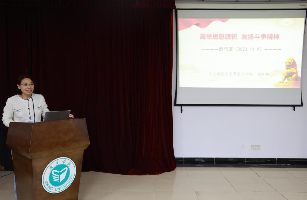 11月9日下午,济宁学院“青年马克思主义者培养工程”暨2023年大学生社团骨干培训班在图书馆C602开展专题学习。马克思主义学院副院长周争艳受邀作了题为“高举思想旗帜,发扬斗争精神”专题讲座。