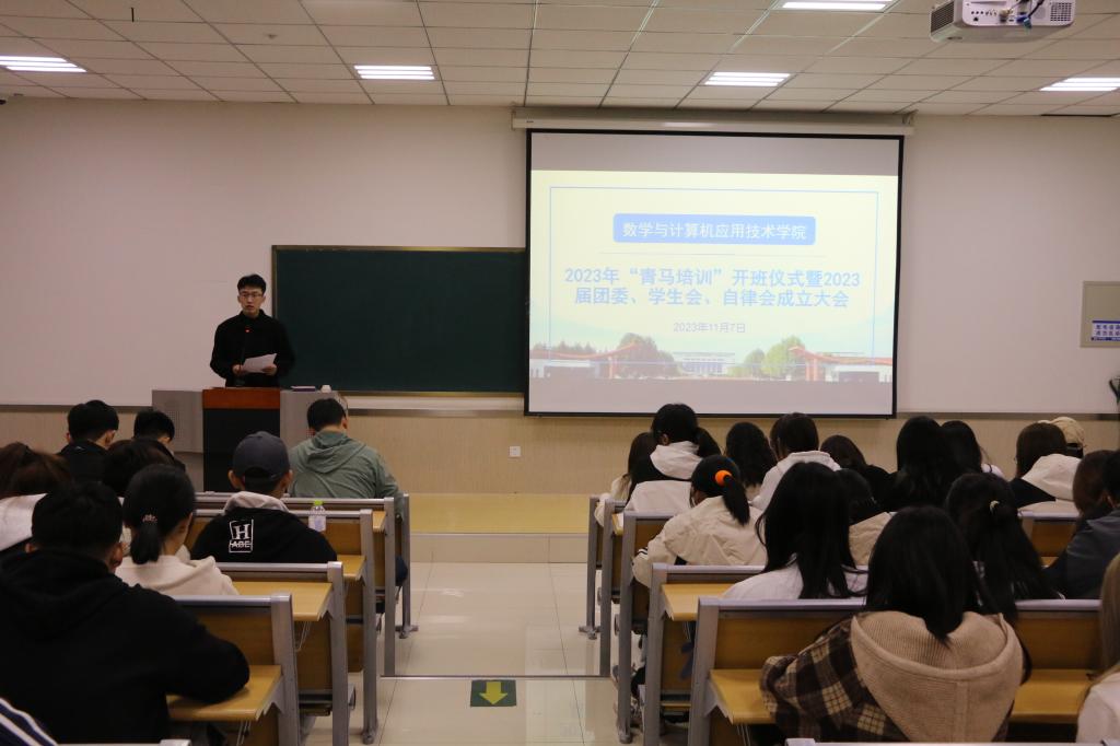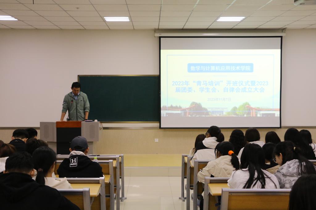 11月7日下午,数学与计算机应用技术学院在8B203教室召开2023年“青马计划”开班仪式暨2023届团委、学生会、自律会成立大会。辅导员王都主持。学院党委副书记冯秉政,团委副书记陈轶洋,及全体辅导员出席。2023届数计学院团委、学生会、自律会全体成员参加。