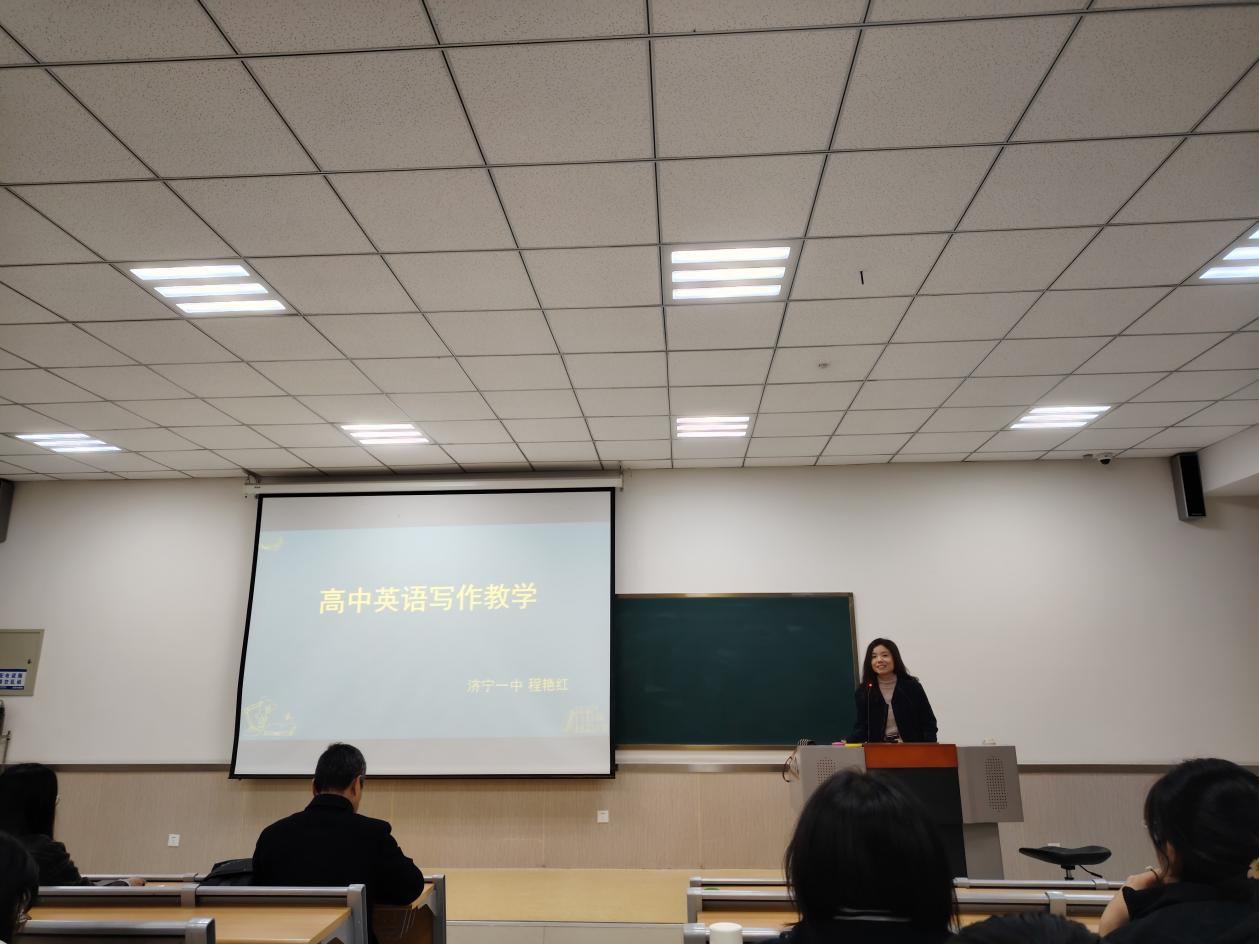 11月10日晚,外国语学院邀请到济宁市第一中学程艳红老师在8号楼B202作了题为“高中英语写作教学”的报告。报告会由英语专业负责人吴瑞民主持,部分教师代表以及英语师范专业近300人次参加了此次活动。本次活动是外国语学院英语师范生从业技能培养工作坊活动之一,也是英语师范生升级指导教育系列活动之一。