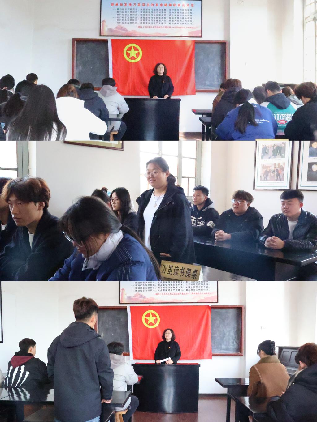 校团委书记张静在万里读书室,为“青马学员”们上了《赓续红色血脉 牢记殷切嘱托——学习习近平总书记关于青年工作的重要思想》的主题团课。她结合学校发展史、杰出校友青年万里成长故事,从“解读历史风云 心怀家国是青年”、“青年兴则国家兴 青年强则国家强”、“青年说给青年听 学习思想谈体会”三部分向同学们阐释了习近平总书记关于青年工作的重要思想内涵,鼓励同学们要承文脉传基因、担使命向未来,以实际行动践行爱国情怀与青春誓言的风采。