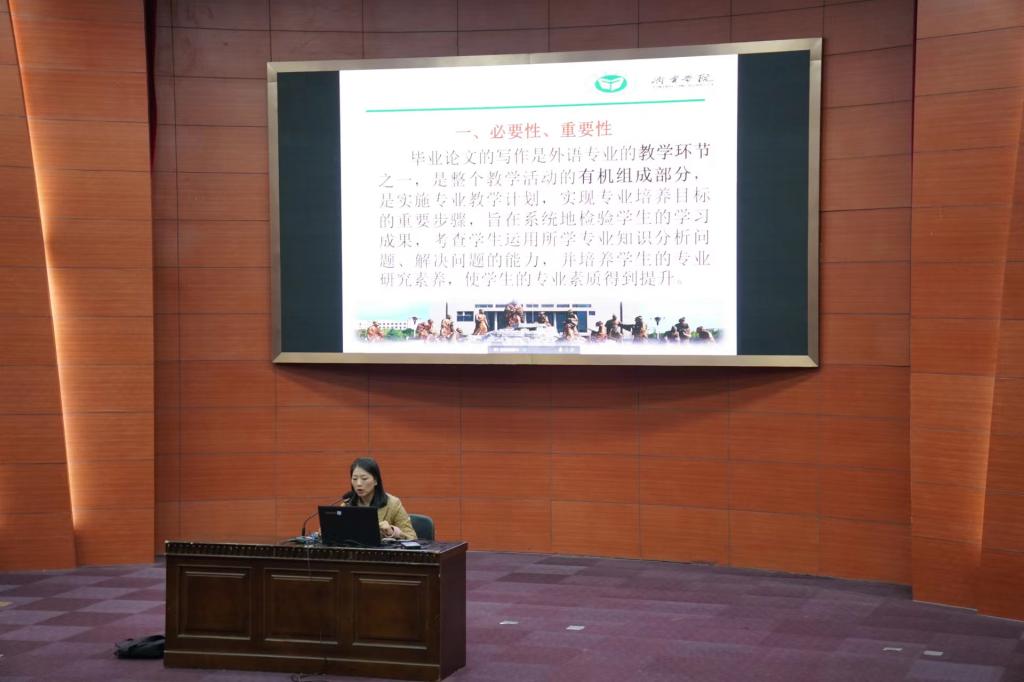 然后,范莉从本科毕业论文撰写的必要性、毕业论文工作程序及要求、指导教师的职责和对学生的要求、本科毕业论文的选题、本科毕业论文手册和本科毕业论文抽检及查重七个方面作了全面讲解。栾珍对大学生毕业论文(设计)管理系统的使用作了详细说明。