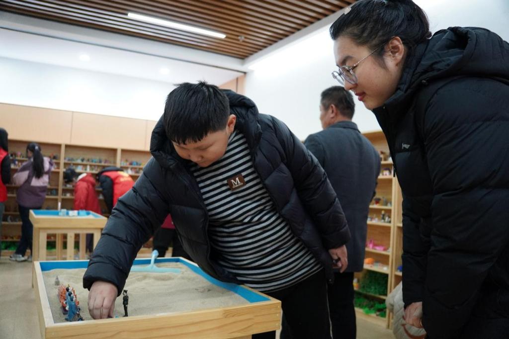 孩子们随后前往心理健康中心进行参观,体验到精彩的沙盘游戏,用沙盘室里的各种道具构造出他们心中的世界。孩子们戴上眼镜设备,亲身参与屏幕中的活动场景,VR虚拟技术拓宽了他们的视野,带来视觉盛宴。VR培训室里不时传来阵阵欢笑,孩子们感受到数字化时代的魅力。