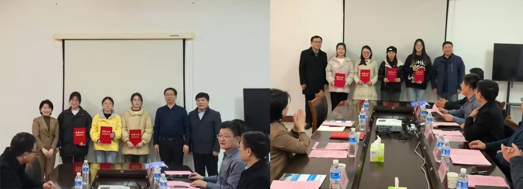 吕志红、夏可树和李洪伟为“米能奖学金”获奖学生颁发荣誉证书;邵春阳、史继军为“米能助学金”获奖学生颁发荣誉证书。