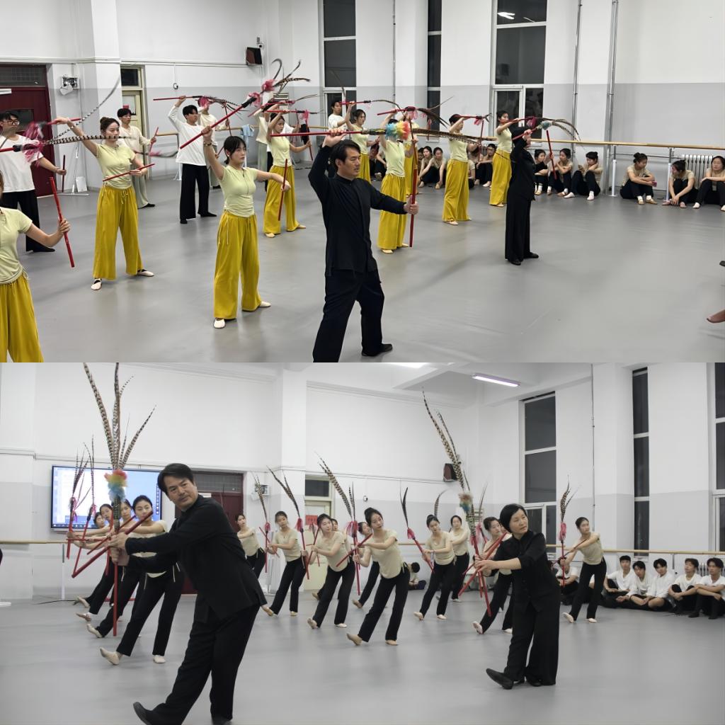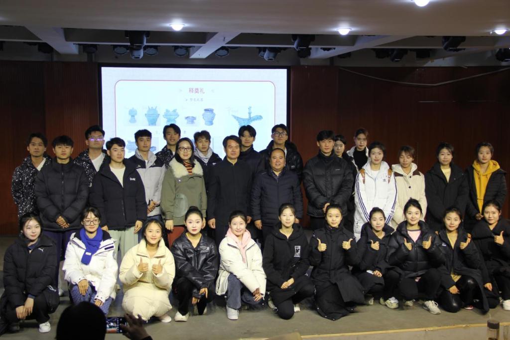 在本次讲座中,李文广先生首先以深入浅出的方式,引导同学们理解和欣赏孔子的思想以及举办祭孔大典的意义和重要性。祭孔大典中使用的祭孔乐舞,是一种包括乐、歌、舞、礼四种形式的庙堂祭祀乐舞。乐、歌、舞都是紧紧围绕礼仪而进行的,所有礼仪要求“必丰、必洁、必诚、必敬”。有“闻乐知德,观舞澄心,识礼明仁,礼正乐垂,中和位育”之谓,自古以来具有巨大的文化和艺术价值。他讲述了孔子的一生以及他的思想如何影响后世,并分享了自己参与祭孔大典的经历和感受。其次,李文广先生通过讲解、演示和表演相结合的方式,向舞蹈学专业的同学们展示了孔子礼乐文化的独特魅力。他讲述了孔子的教育理念以及礼乐文化在现代教育中的价值,并现场进行佾舞的教学与传承。最后,同学们在李文广先生和专业老师的指导下,手持传统的道具龠、翟,跟随音乐节奏,学习了这一具有深厚文化内涵的舞蹈。通过现场学习,同学们亲身体验了孔子的思想和礼乐文化,更加深入地理解了其内涵和价值。