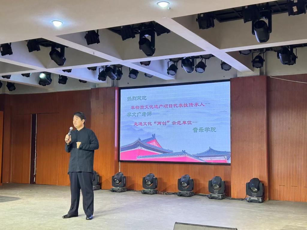 12月4日,音乐学院邀请祭孔大典省级非物质文化遗产项目代表性传承人李文广先生到音乐学院举办祭孔乐舞专题讲座,开展佾舞现场教学。音乐学院院长齐江、舞蹈学科带头人王鲁宁副教授、青年舞蹈教师王雨等出席活动。该院各年级舞蹈学专业学生参加活动。