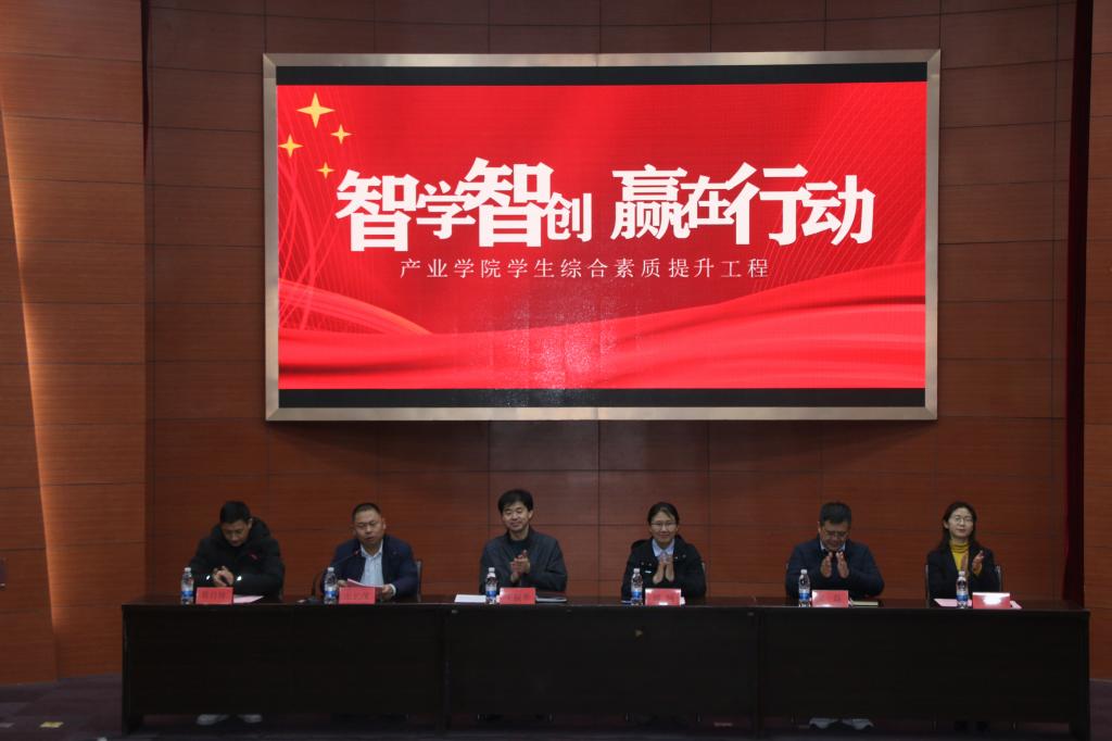 为响应学校学风建设工作要求,激发同学们学习热情,营造积极向上的浓厚氛围,创新学院学生工作方法、构建科学规范的第二课堂育人体系,全面提升学生综合素质和人才培养质量。12月6日,产业学院启动“智学智创•赢在行动”学生综合素质提升工程。学院党委书记王振平,院长周珂,学术副院长安磊、夏自祥,全体辅导员、班主任代表以及各班级学生代表参加活动。副院长张长茂主持启动仪式。
