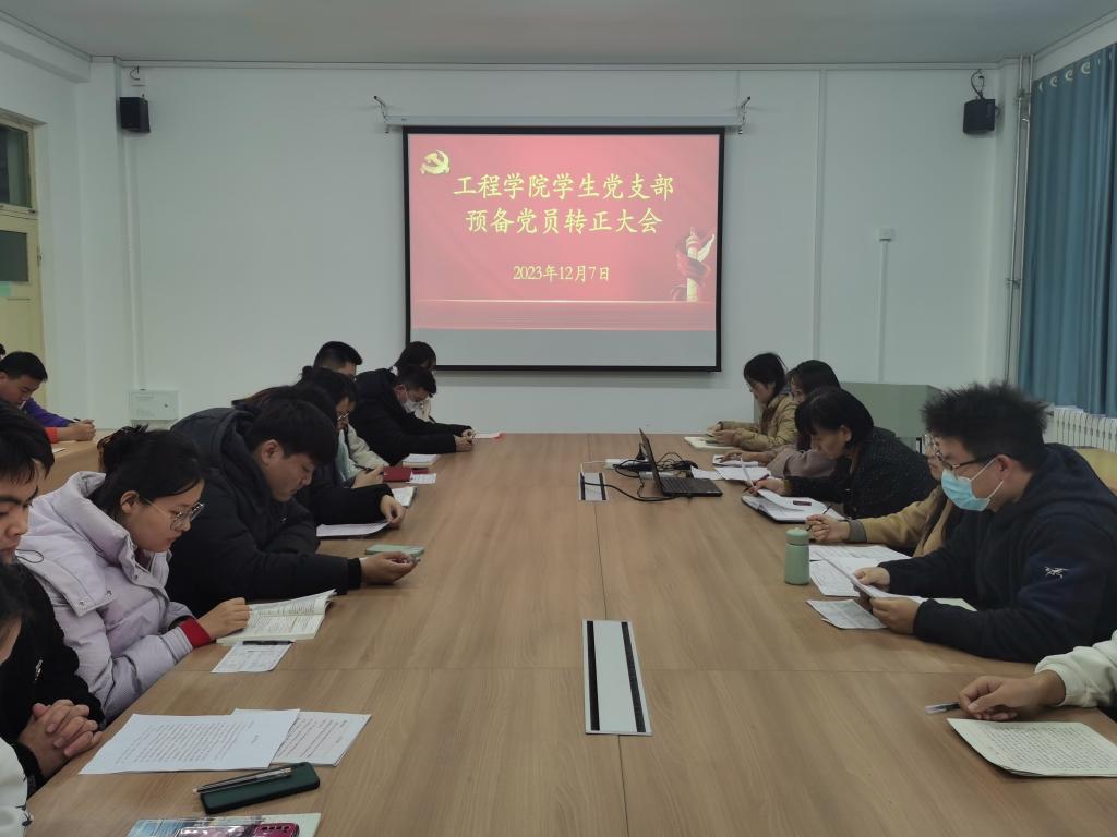 12月7日,工程学院学生党支部在8号楼C209会议室召开支部党员大会,讨论白晓萱等7名预备党员的转正问题。本次会议由学生党支部书记姬晴晴主持,学院党委书记唐秋晶、党委委员陈雪列席指导。