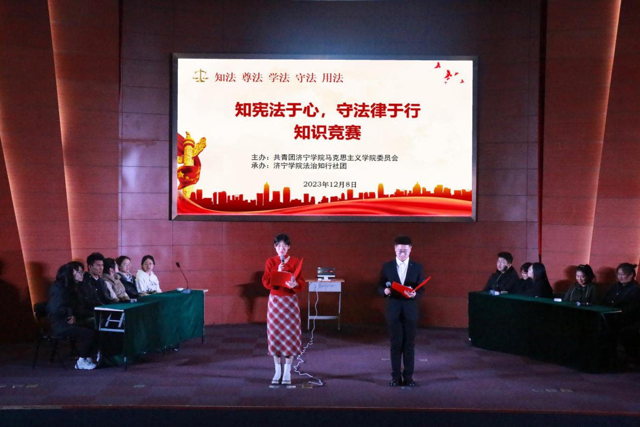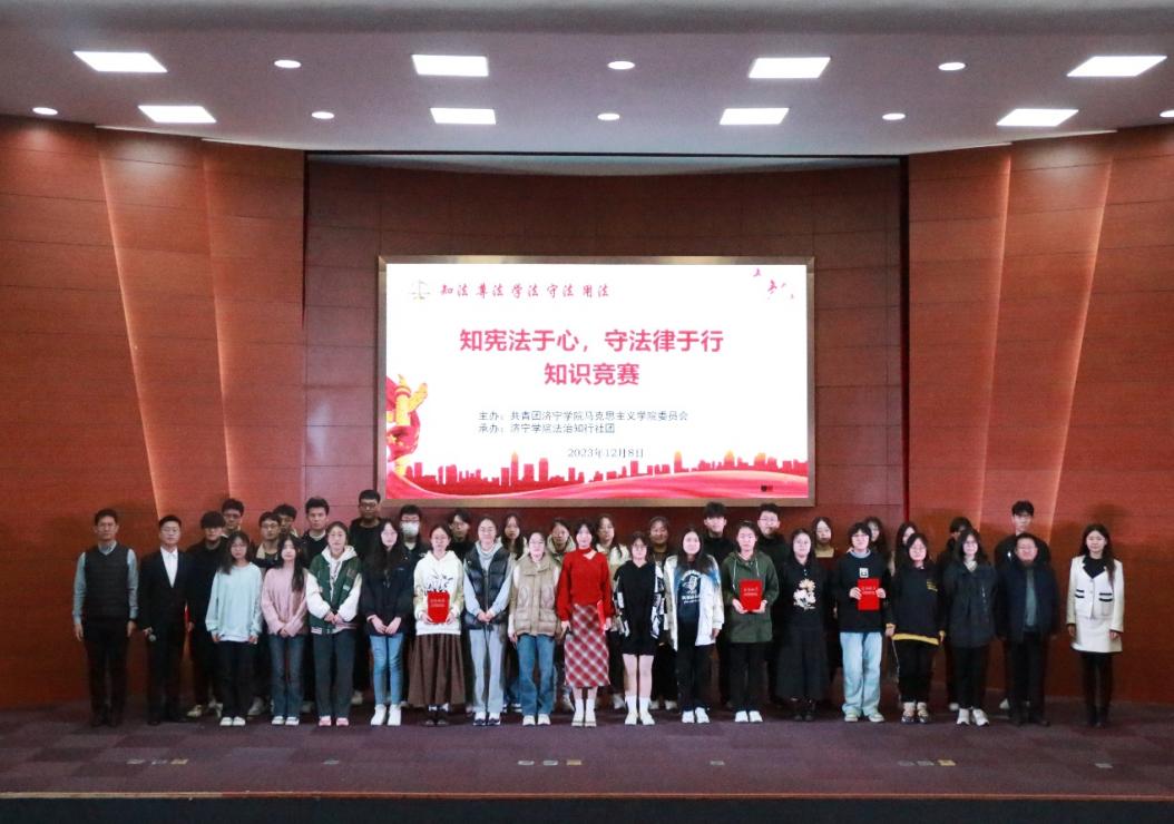 为大力弘扬宪法精神,广泛宣传普及宪法知识,引导同学们自觉尊崇宪法、学习宪法、遵守宪法、维护宪法、运用宪法。12月8日晚,马克思主义学院在理科楼报告厅举办“知宪法于心,守法律于行”知识竞赛活动,马克思主义学院团委书记姚海生、团委副书记付茹雪、副科级组织员李盎担任活动仲裁员,2022级、2023级全体同学参与活动。