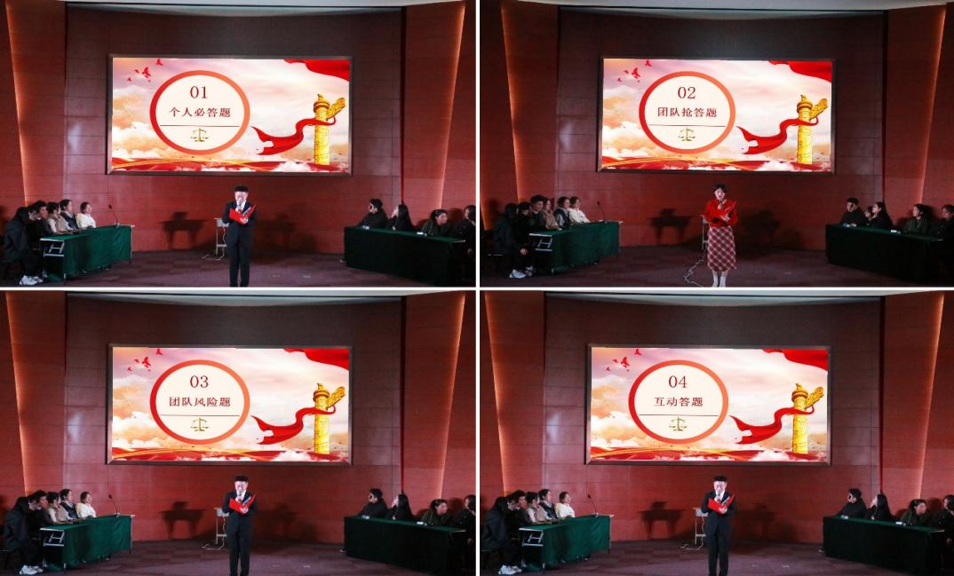 本次共来自4个班级的4支代表队参赛,分为个人必答题、团队抢答题、团队风险题和互动答题四个环节,为区分比分胜负还增设了附加题环节。各参赛代表队沉着应战、认真回答、配合默契、反应敏捷,充分展现了积极协作、勇于争先的团队精神,不时赢得现场观众的热烈掌声。