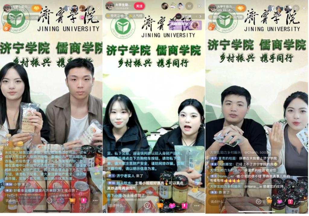 成立一支“敢闯会创”大学生创业服务团队。儒商学院与曲阜市电子商务公共服务中心共建“乡村振兴直播间”,选拔70余名优秀学子成立“大学生乡村振兴直播团队”。指导教师董腾博士带队深入企业、乡村严格选品,开展直播技术培训,团队累计开展优质农产品和特色产品直播200余场。指导教师赵月阳博士带队深入石门山开展乡村旅游调研,探索通过“直播+电商”创新石门山镇文化旅游和特色产业发展的路径。邀请优秀校友走进直播间开展“就业传帮带 师兄师姐面对面”活动,引导同学们找准职业发展方向,积极创新创业,用青春热情和智慧为乡村振兴贡献力量。依托团队孵化“互联网+”、电子商务“三创”赛等竞赛项目,力争在高水平学科竞赛中实现突破。