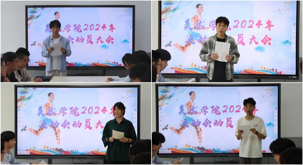 为激发学生运动热情,增强学生身体素质,动员学生积极备赛,4月11日下午,美术学院在6号楼B107会议室召开2024年春季田径运动会动员大会,美术学院党委副书记孔瑞,辅导员张焕荣、朱润昂、谢小涵、林松及全体学生运动员参加。