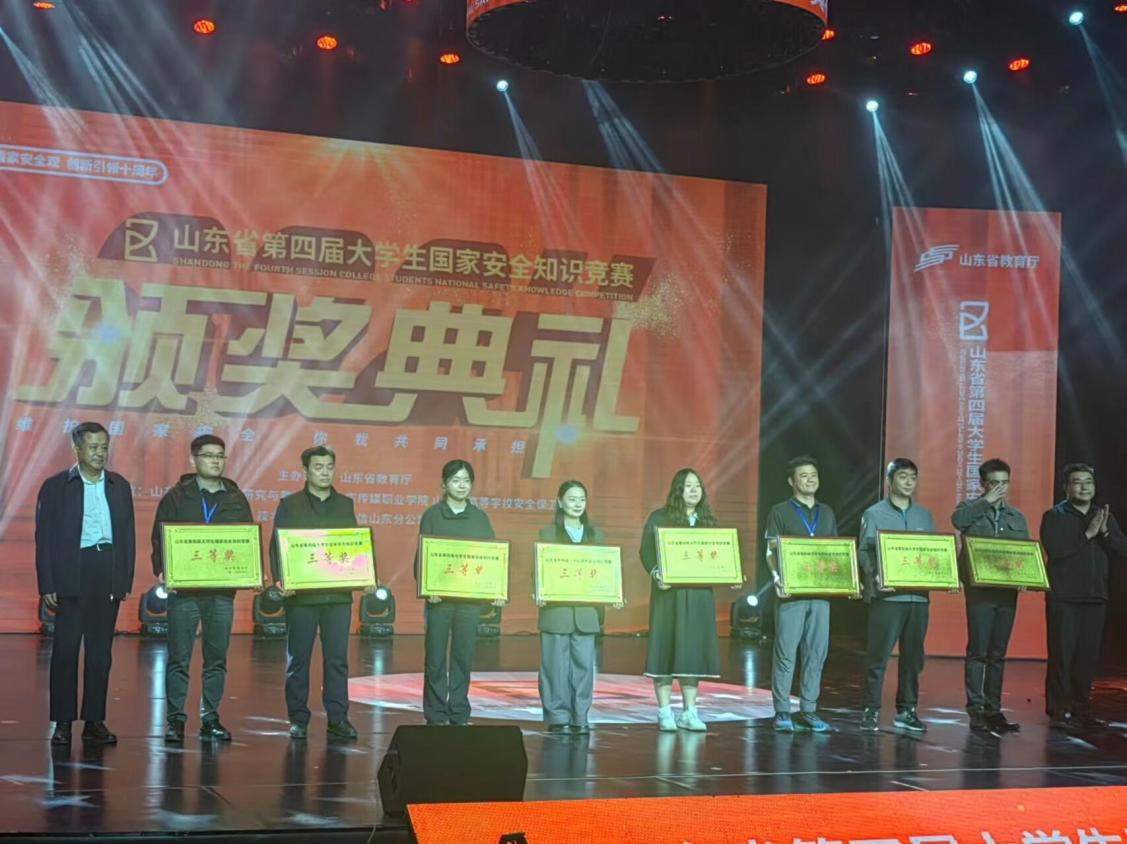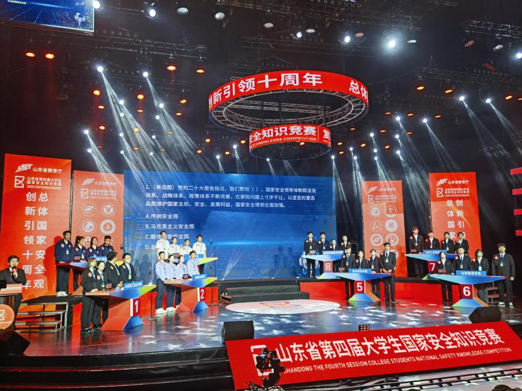 山东省第四届大学生国家安全知识竞赛由山东省教育厅主办,山东省学校安全研究与教育基地、山东传媒职业学院、山东省高等学校安全保卫协会承办。大赛分为“理论竞答”“安全情景剧”“技能比赛”“主题演讲”等模块,重点考查参赛学生对国家安全知识掌握情况、教学楼逃生及扑灭火灾技能水平、创新应用等综合能力。在“安全情景剧”模块,我校代表队表现突出,围绕“太空安全”主题创编的作品《守护星辰》获得全场最高分。