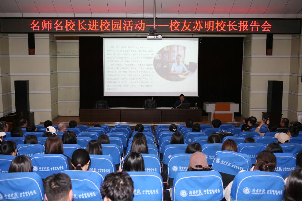 随后,苏校长进行了题为“扎根孔子故里,化育时代君子”的报告。初等教育学院全体教师及2020级学生参加了报告会。报告会由杨波主持。苏校长结合自身的教育实践,紧紧围绕学校“立德树人”的根本任务,从历史渊源、时代要求、文化价值等方面,阐释了传承儒家优秀传统文化的历史使命、时代担当和现实意义。论述了汲取孔子教育思想精华并融于现代小学教育,通过十大行动致力于培养少年君子方面的探索和实践。重点讲述了孔子教育思想融入学校六大系统的成功实践,并分享了在学校管理、课程设置、师资培养等方面的成功经验,还就如何构建和谐的师生关系、如何营造积极的学习氛围等问题提出了独到的见解。