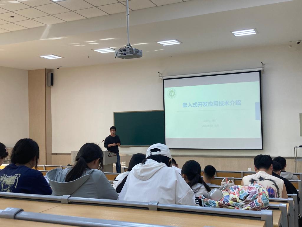 陈广博士结合自己的研究方向及多年企业工作经验,向同学们介绍了嵌入式开发应用技术的基本概念、应用领域、就业前景以及知识体系等内容,并对同学们学习嵌入式的方法提出了意见和建议,指导同学们要打好专业基础、注重知识积累,不断提高自己未来的就业竞争力。