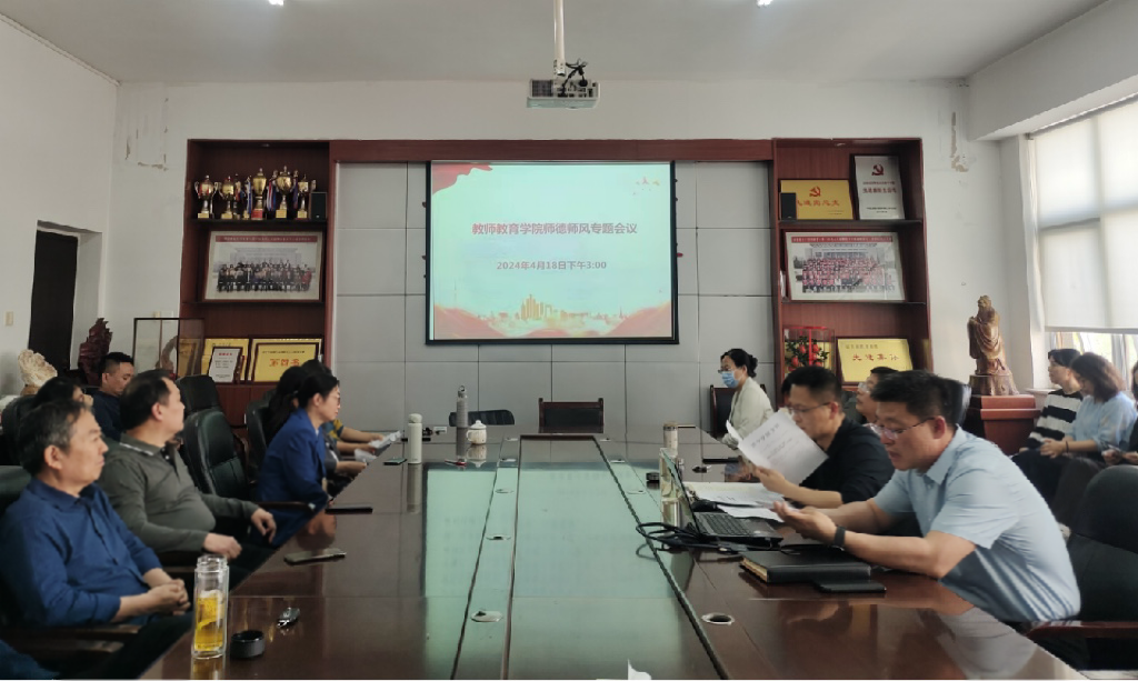 为巩固巡察整改成果,营造风清气正的教育氛围,4月18日,教师教育学院召开师德师风教育专题会议,该院党委书记刘勇主持,全体教职工参加。