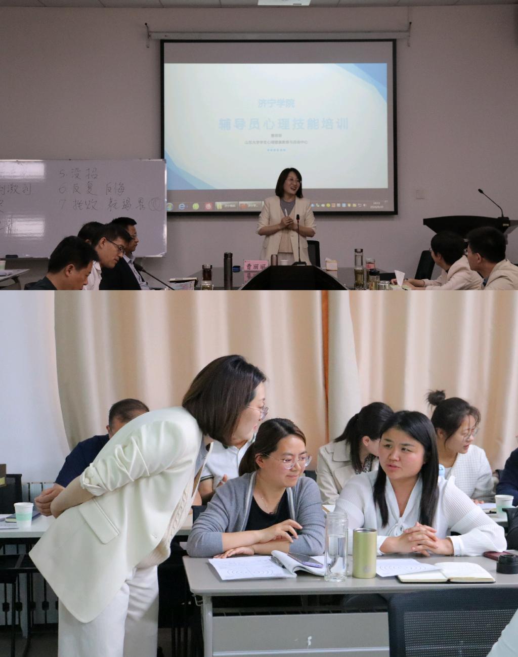 本次培训主讲教师,为山东大学学生心理健康教育与咨询中心咨询师曹丽丽。培训会采用了案例讨论、角色扮演等体验互动的培训形式。曹丽丽结合自己多年从事学生心理健康教育和咨询的经验,深刻剖析了辅导员们事前呈报的典型心理危机案例,生动还原了与重点学生谈心谈话过程和心理危机处置过程,深入浅出地阐释了学生心理危机识别技巧、心理危机干预流程、有效约谈重点学生的策略,形象直观地展现了如何把工作做到学生和家长心坎上。让大家在“身临其境”中,掌握谈心谈话的技巧,学习心理危机的处置方法,并提升自我心理关照能力。