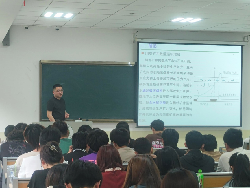 4月19日下午,资源环境与安全工程学院2024年度第一期博士讲堂在9号楼A105教室如期举行,王广涛博士作了题为《闭坑矿井矿界煤岩柱采动破坏及其渗透性演化特征》的学术报告,学院教师及近百名安全工程专业的学生参加。