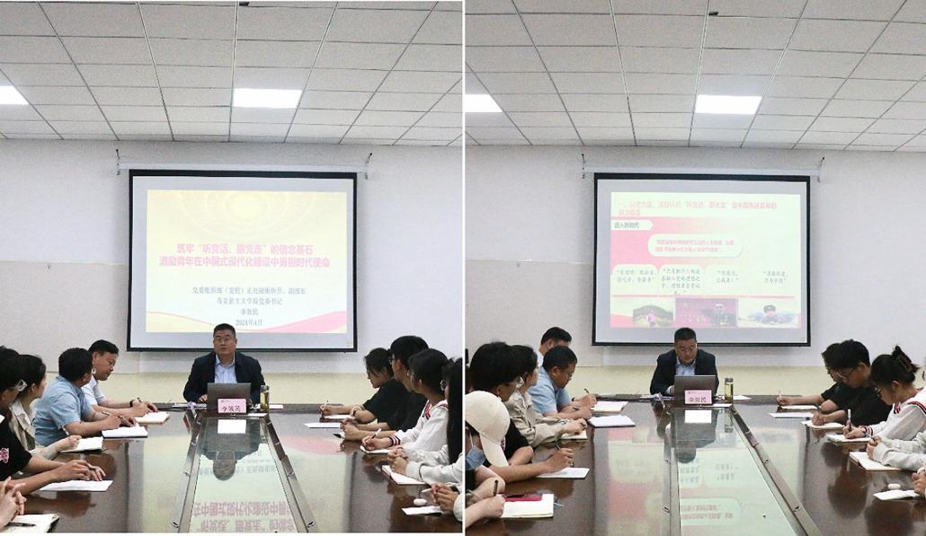 启动仪式结束后,李效民为全体学员作了题为《筑牢“听党话、跟党走”的信念基石 激励青年在中国式现代化建设中勇担时代使命》的报告,内容围绕“以史为鉴,深刻认识‘听党话、跟党走’是中国先进青年的政治信念;强化落实,培育壮大引领青年坚定‘听党话、跟党走’的政治信念;提高认识,准确把握‘听党话、跟党走’政治信念的重大要求;砥砺前行,做坚定不移‘听党话、跟党走’的践行者”等四个方面进行了全面、深入、细致的讲解,引导学生干部发扬迎难而上、挺身而出的担当精神,激扬踔厉奋发、勇毅前行的青春风貌,不辜负伟大时代赋予的神圣使命。