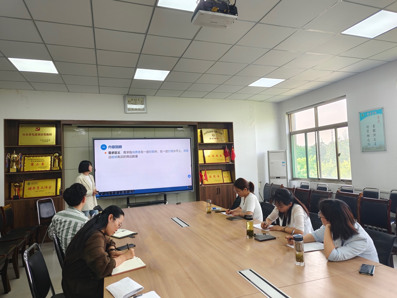 在磨课活动中,青年教师赵月阳和陈蕊蕊分别以《导游实务》课程中的《导游技能讲解》及《微观经济学》课程中的《需求和供给的基本概念和影响因素》为例,进行了20分钟的课堂教学展示,两位教师全情投入、精神饱满、内容充实,运用多种教学方法有效组织教学,充分展现了学院青年教师的风采。授课结束后,根据学校青教赛评分要求,张颖慧、孔令芳、邢晓玉分别从教学理念的体现、教学方法、教学设计、现场表现力、语言表达、课件制作等方面进行了专业化的点评,提出了进一步提升的具体思路。