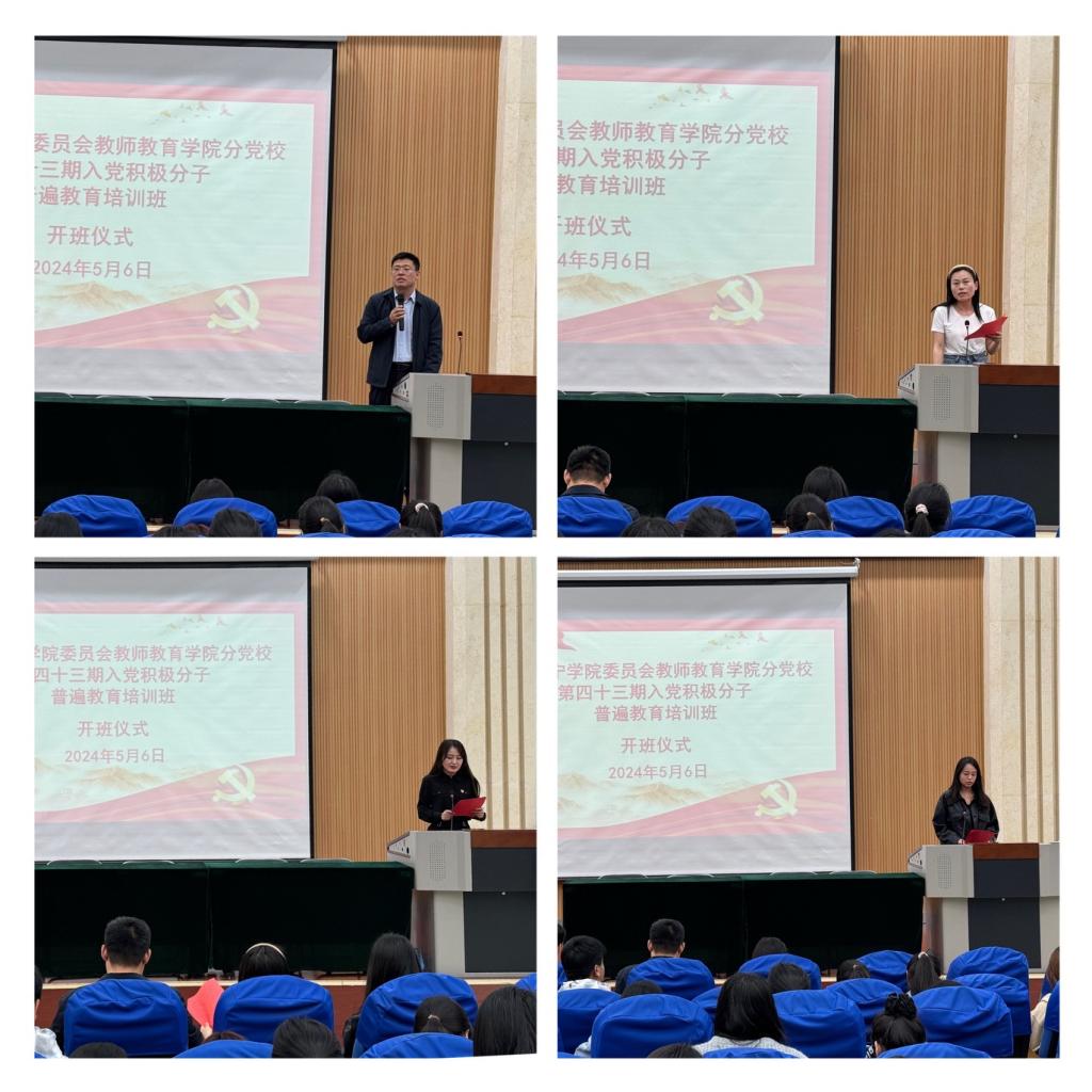 为深入贯彻落实习近平新时代中国特色社会主义思想,切实加强入党积极分子的培养教育,5月6日下午,教师教育学院第四十三期入党积极分子培训班开班仪式在3号楼报告厅举行。教师教育学院党委书记刘勇,全体辅导员及185名学员参加,会议由该院党委委员、学生第二党支部书记王欣欣主持。