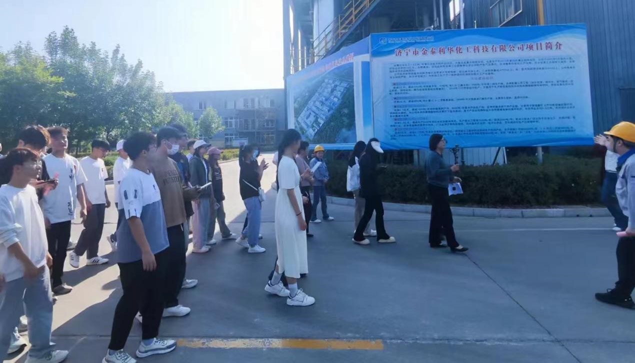 随后,同学们来到济宁市金泰利华化工科技有限公司,在负责人的介绍下,同学们了解到该公司是以科技、发展、创新于一体的科研开发生产综合性企业,有着优良的发展前景,同学们在这里学习到新知识的同时,更拓宽了视野。