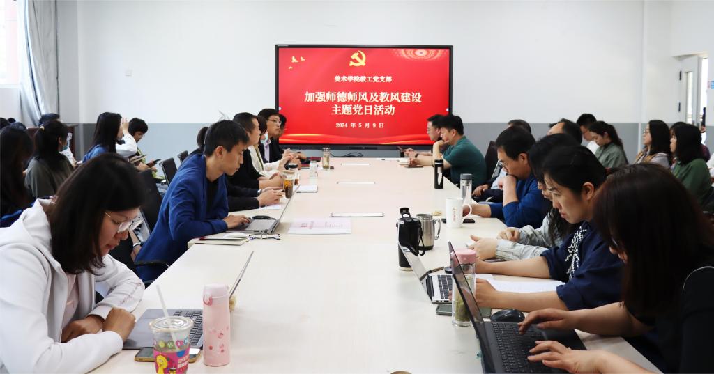 5月9日下午,美术学院教工党支部召开支部扩大会议,推进党纪学习教育,加强师德师风及教风建设,引导教师不忘教育初心、担当育人使命。活动由教工党支部书记张继华主持,教工党员及全体老师共同参与。