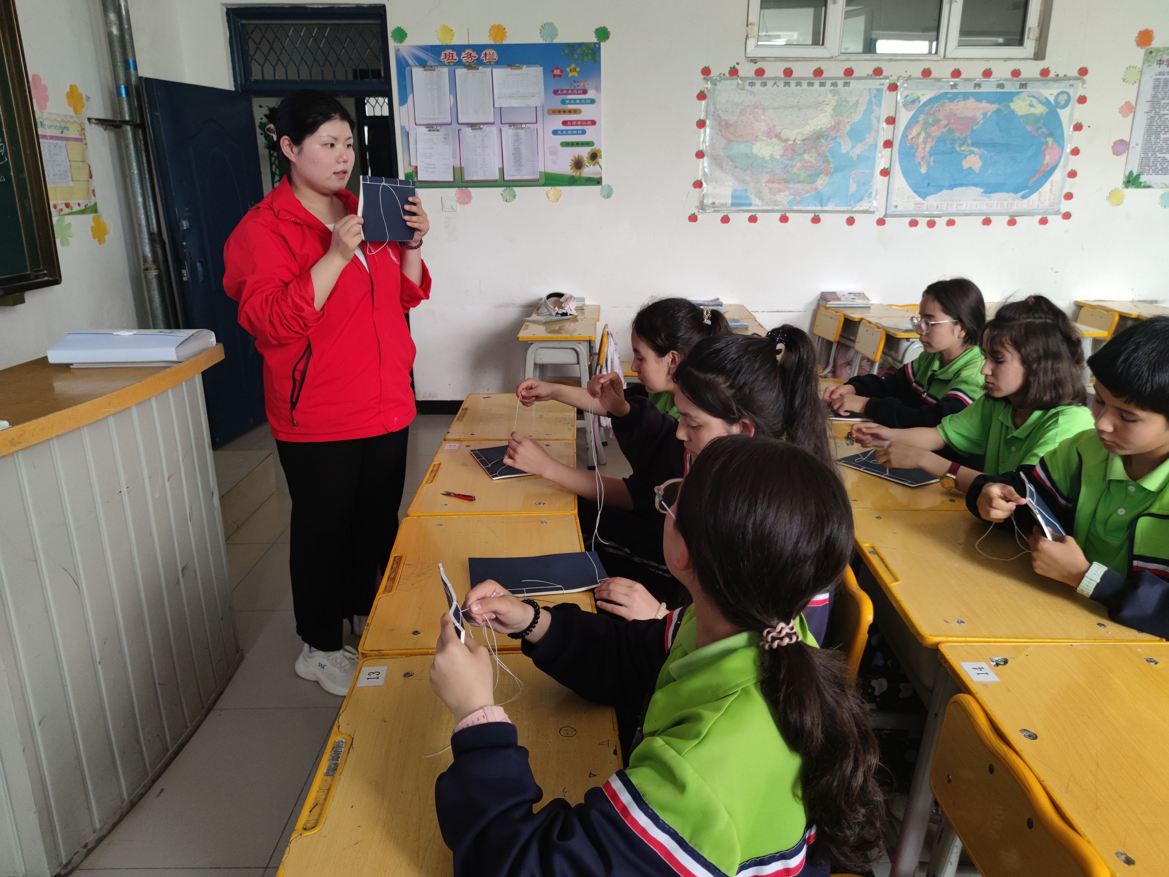 支教团同学葛安华与大家一起制作线装书。理料、折页、包角、打孔、穿针引线……从线装书中,同学们能够感受到千百年中的一次次编纂与装帧中传承的生生不息的中华文化。在大家的共同努力下,每一位同学都逐步完成了“线装书”的装订,同学们无不惊叹古人卓越的智慧。