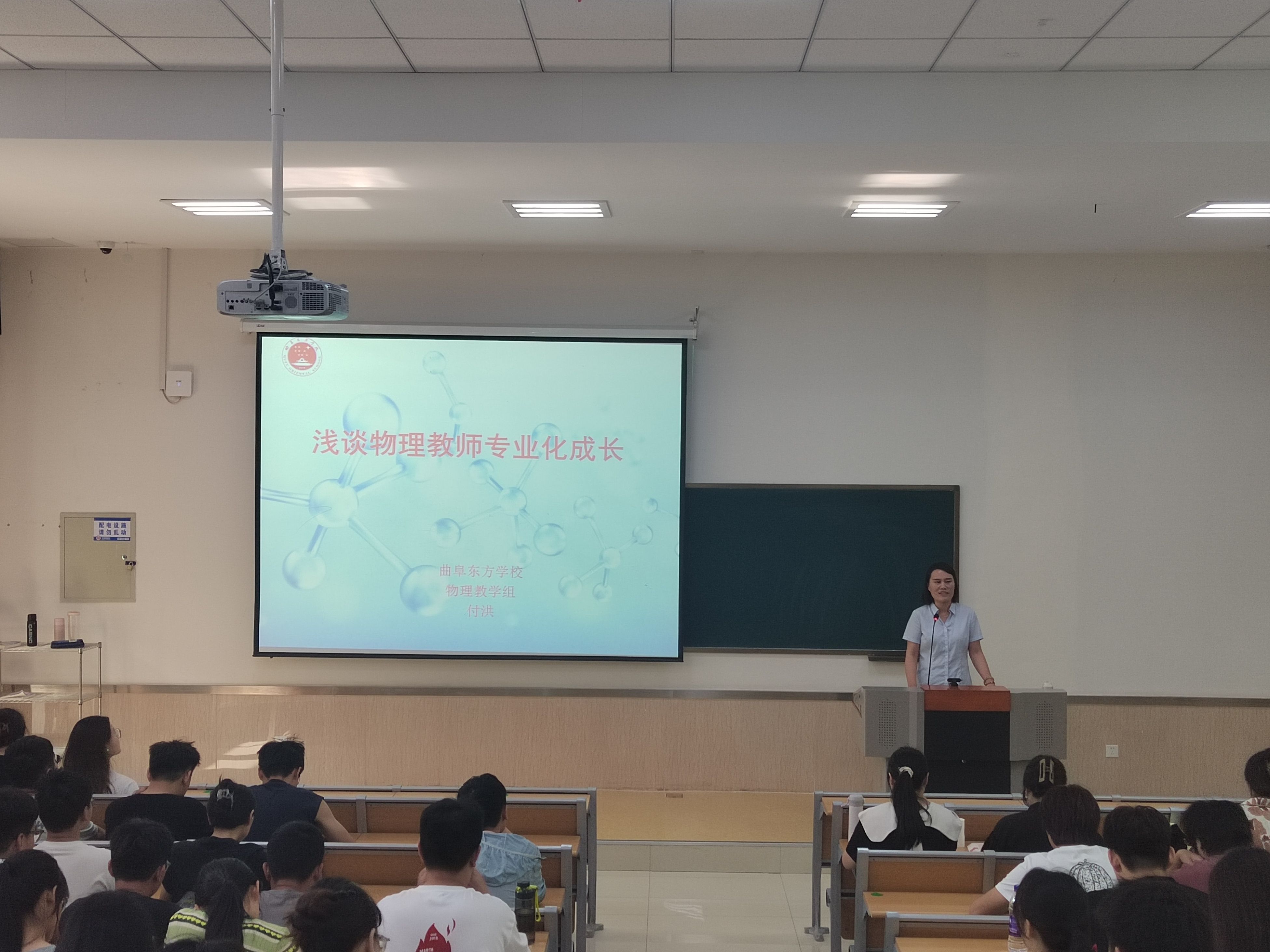 5月18日,在理科楼D201智慧教室,曲阜东方学校付洪老师做了题为浅谈物理教师专业化成长的报告,2022级、2020级物理学师范专业全体学生参加了报告会。报告会由物理与电子工程学院办公室主任孟凡华老师主持。