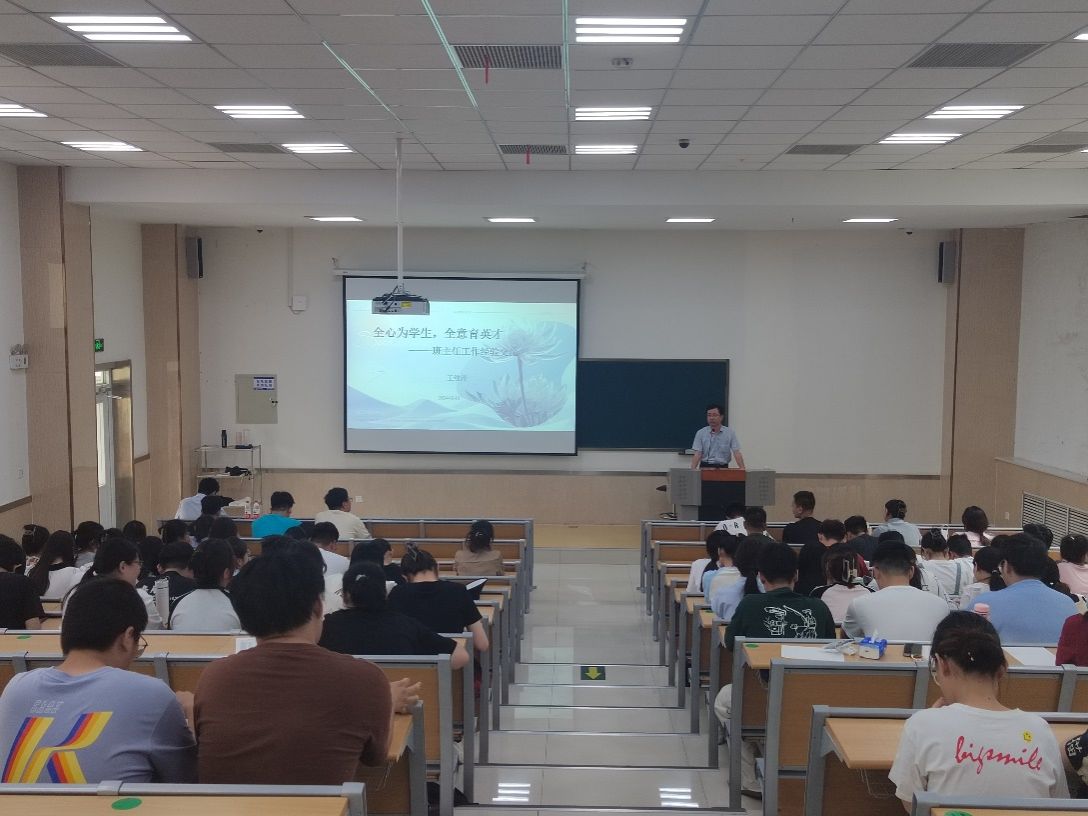 5月19日,在理科楼D201智慧教室,济宁海达行知学校物理学科主任马洪庆、高中年级主任王继涛分别做了“高中物理实验课程开设与自制教具”和“全心为学生,全意育英才”为主题的班主任工作交流的报告。2022级、2020级物理学师范专业全体学生参加了报告会。报告会由物理与电子工程学院副院长岳现房主持。
