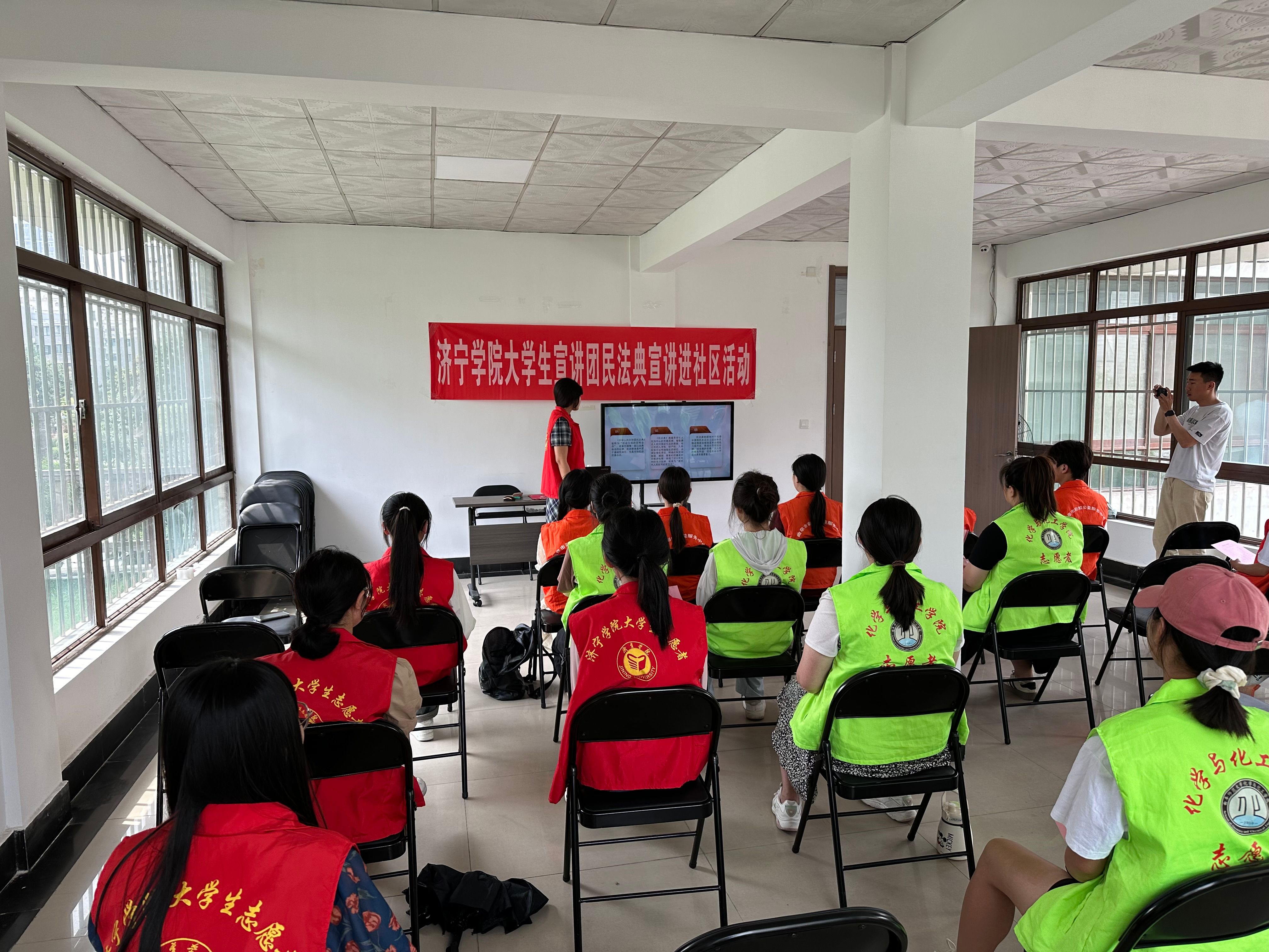 5月19日上午,由济宁学院融媒体中心宣讲部和经济管理学院组成的济宁学院大学生宣讲团来到时庄街道新苑社区党群服务中心开展民法典宣讲进社区活动。
