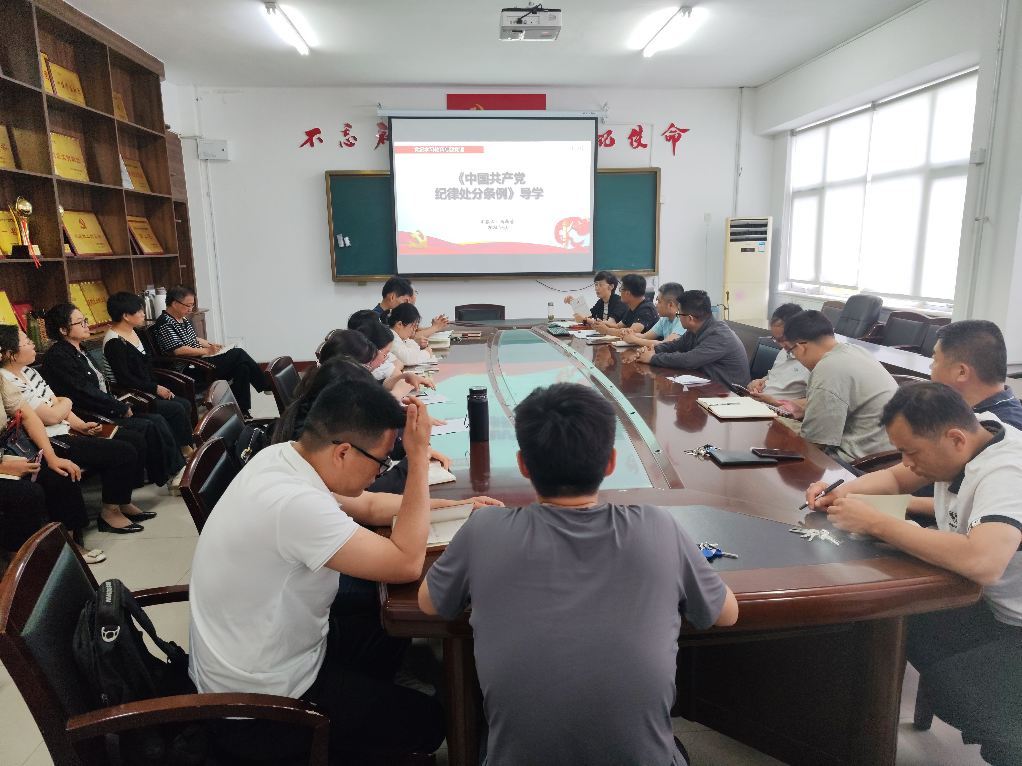 活动中,党委书记马新蕾作《中国共产党纪律处分条例》导学专题党课,带领全体教工党员学习新版《条例》修订的重大意义和修订亮点,对《条例》框架进行梳理,详细解读了《条例》修订背后的考量。她指出,学习《条例》是当前一段时期重要的政治任务,全体党员要深刻领会党纪学习教育的重大意义,将纪律要求内化于心、外化于行。要原原本本、逐字逐句学习,将个人自学和集体学习结合起来。要将党纪学习教育与师德师风建设结合,与科研诚信主题活动结合与支部标准化规范化建设结合,切实促进党建提质,为学院高质量发展保驾护航。