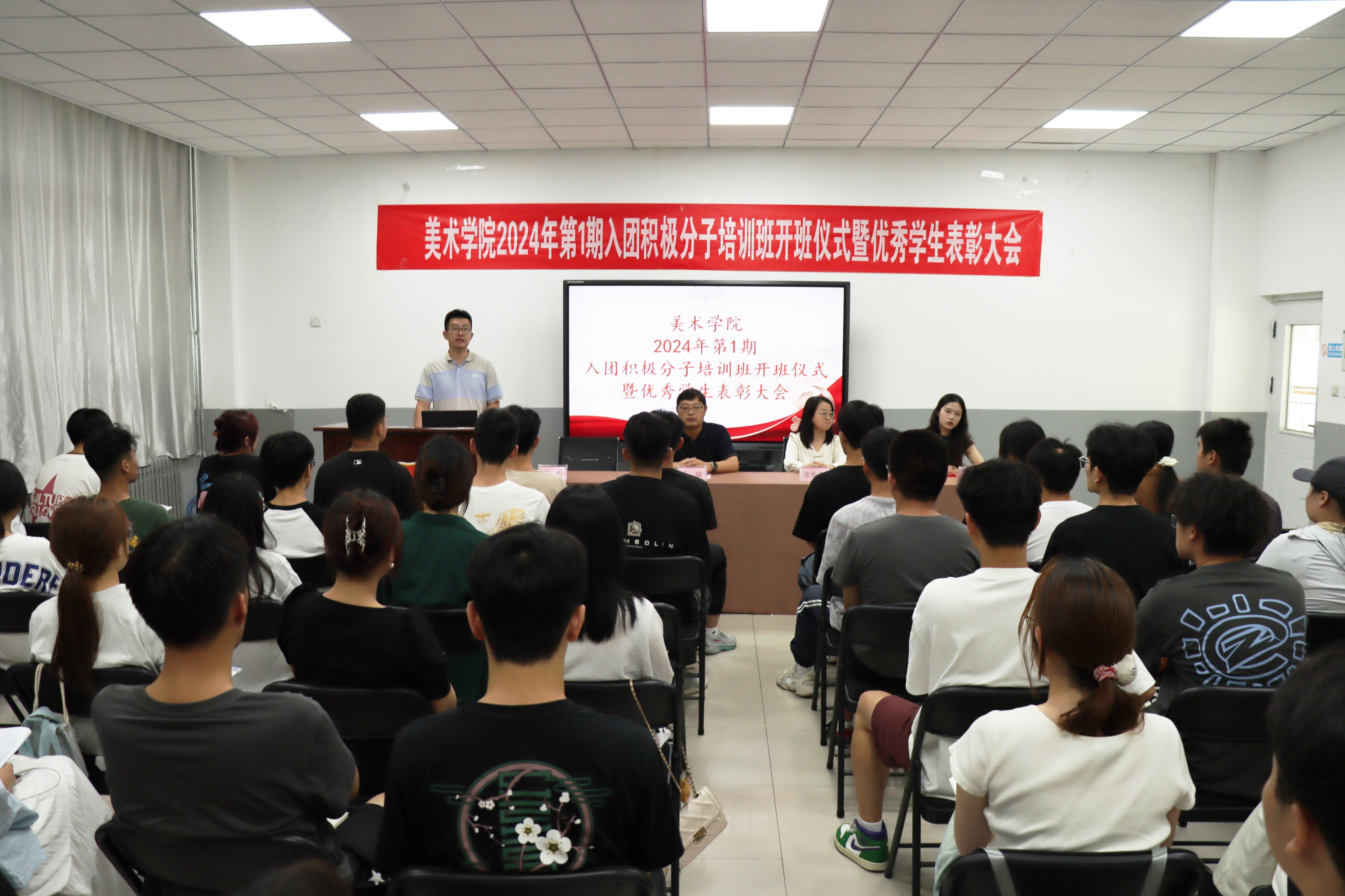 为加强共青团思想政治引领,激励青年拼搏奋进、干事创业,5月22日,美术学院在6号楼B107会议室举办2024年第1期入团积极分子培训班开班仪式暨优秀学生表彰大会,美术学院党委副书记孔瑞,辅导员张焕荣、谢小涵、林松,全体入团积极分子及受表彰学生参加,活动由林松主持。